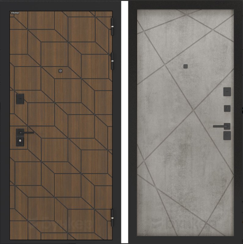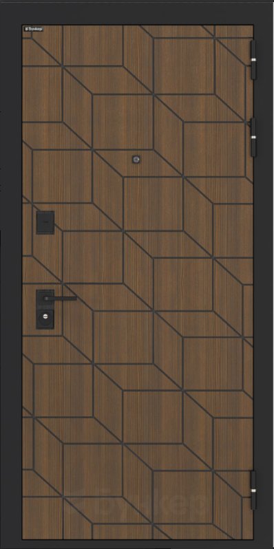 Черная матовая: Броненакладкая, сувальдные накладки со шторкой, ручка, ночник, цилиндр ключ-вертушка, глазок по центру или сбоку