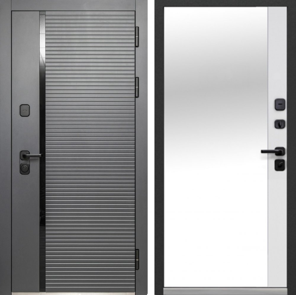 Металл: Порошково-полимерное покрытие, цвет Муар черный с блестками 9005 Отделка снаружи: лист стали + ламинированная МДФ панель 12мм , цвет Антрацит софт + вставка из черного акрила